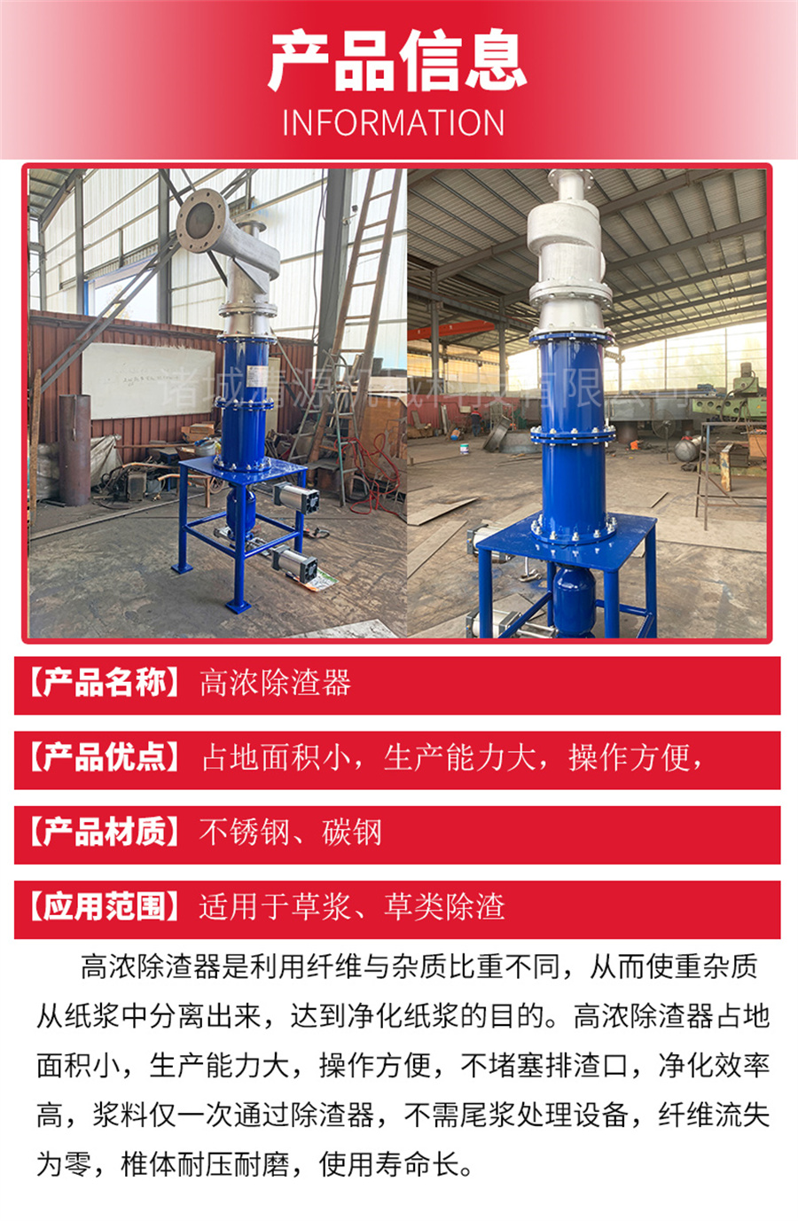 概述:ZDC系列双锥高浓除渣器是利用纤维与杂质比重不同,从而使重杂质从纸浆中分离出来,达到净化纸浆的目的。高浓除渣器占地面积小,生产能力大,操作方便,不堵塞排渣口,净化效率高,浆料仅一次通过除渣器,不需尾浆处理设备,纤维流失为零,椎体耐压耐磨,使用寿命长。