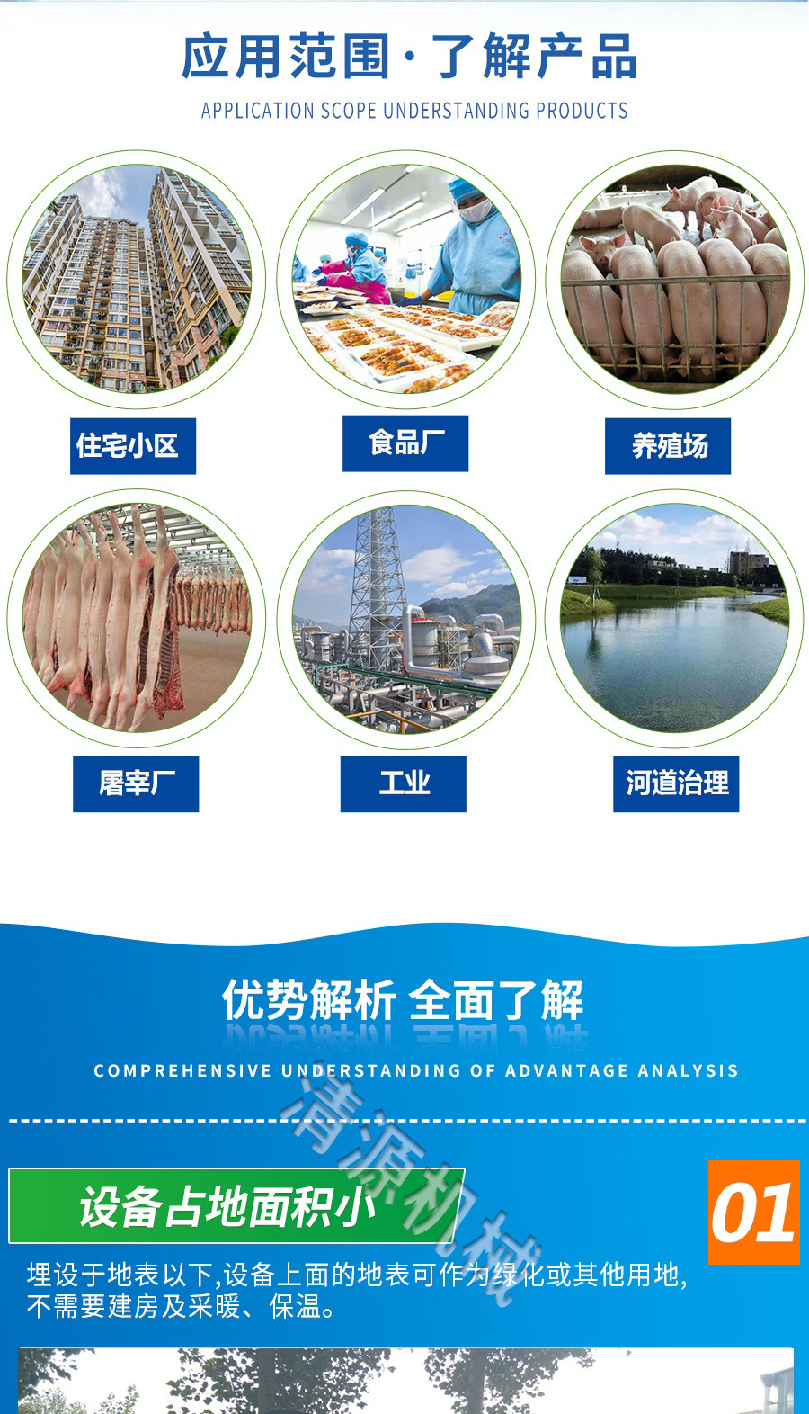 适合用于住宅小区、办公楼、宾馆、饭店、机关、部队、医院、高速公路、铁路、工厂等生活污水和与之类似的屠宰、纺织、啤酒、造纸、制革、食品、化工等行业中小型规模工业废水的处理和回用。
