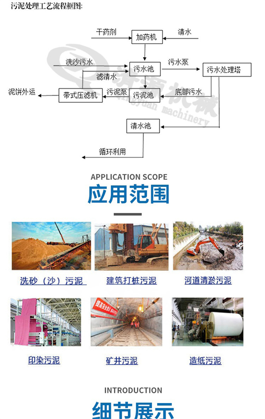 洗砂污水处理设备专门适用于制沙场洗沙污水处理,建筑打桩泥浆,砂场泥浆脱水,钻井泥浆处理,隧道山洞泥浆,洗矿废水处理等各种泥浆和水的分离。