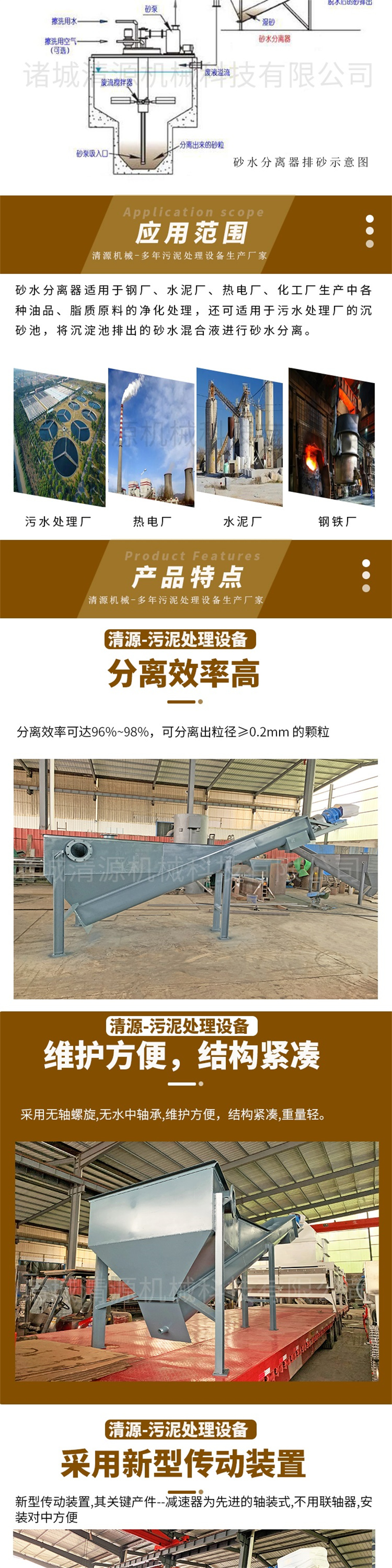 此外,我公司还生产螺旋钟式除砂机,地埋式污水处理设备、气浮机、污泥压滤机、固液分离设备、造纸设备等其他设备,欢迎订购联系