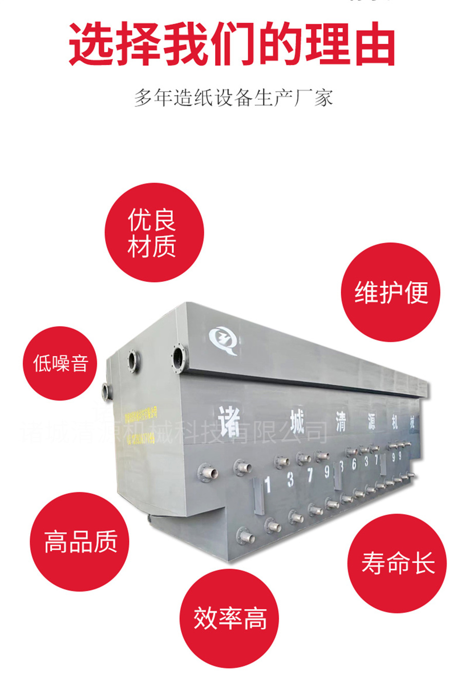 微浮选脱墨机的两段浮选系统(一段+二段)确保更大限度地去除油墨等杂质的同时,保证纤维流失更小。两段浮选系统(前段+后段)层叠布置,占地面积小。