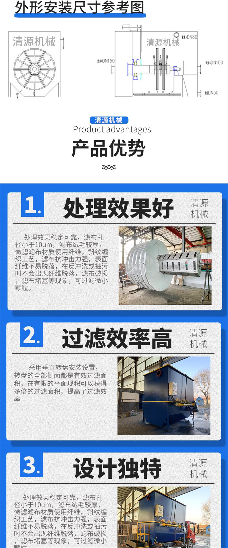 诸城清源机械科技有限公司纤维转盘过滤器特点: