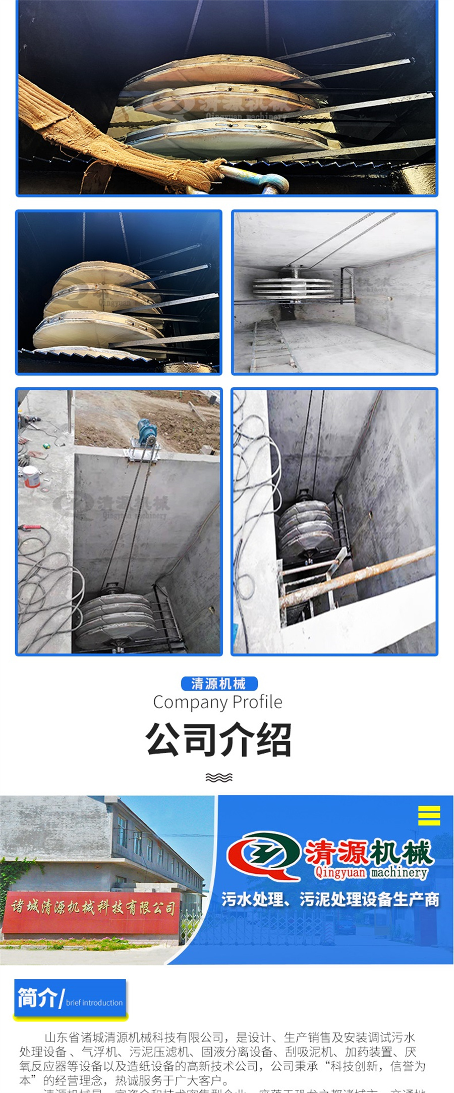 诸城清源机械科技有限公司生产的纤维转盘过滤器由中心转鼓、转盘、反洗系统和配套控制电气系统等组成。转盘固定在中心转鼓周围,并与中心转鼓具有连通孔。原水(污水)由中心转鼓的一端开口流入转鼓内,并通过连通孔进入各转盘,转盘两侧装有过滤布,过滤布为不锈钢丝或聚酯丝编织而成,过滤孔径更小可达10μm。原水通过过滤布过滤后,清水流出过滤布,从过滤水出口排出系统外。随着过滤的进行,过滤布内侧的截留杂质不断增加,过滤压差随之增加,透过滤布的水量减小。当杂质堆积到程度,中心转鼓液位达到设定值,需要进行反洗,将过滤布内侧堆积的杂质反洗出。反洗水泵抽取透过过滤布的清水,喷洒到过滤布外侧,将过滤布内侧的截留杂质冲洗下来,冲洗后污水掉落在接液盘内,然后排出装置外。反洗时转盘旋转,反洗水喷洒不同角度的过滤布,直至转盘旋转一周,过滤布全部经过清洗,反洗停止,重新进入静止过滤过程,直至再次进行反洗。
